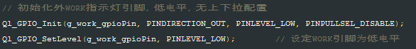 Ql_GPIO_SetLevel(g_work_gpioPin, PINLEVEL_LOW); // 设定WORK引脚为低电平