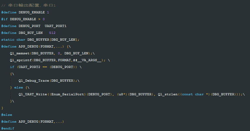 Ql_UART_Write((Enum_SerialPort)(DEBUG_PORT), (u8*)(DBG_BUFFER), Ql_strlen((const char *)(DBG_BUFFER)));