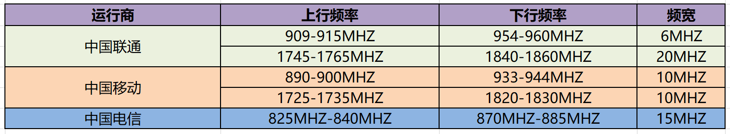 - 国内运营商适用的NB-Iot频段