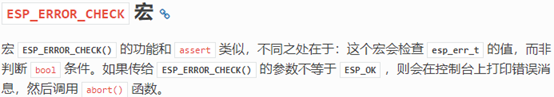 在 ESP-IDF 的示例代码中,很多都会使用 ESP_ERROR_CHECK 来处理各种 API 引发的错误,虽然这不是应用程序的最佳做法,但可以让示例代码看起来更加简洁。例如:ESP_ERROR_CHECK(nvs_flash_init());