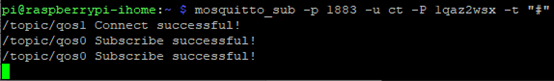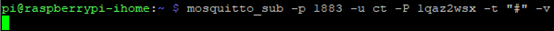 mosquitto_sub -p 1883 -u ct -P 1qaz2wsx -t "#" -v