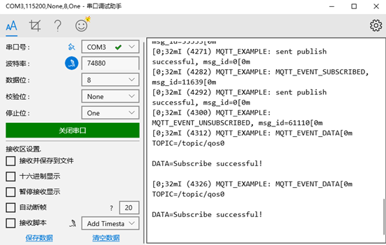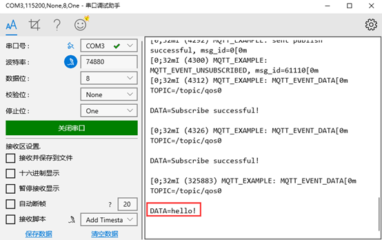 - MQTT订阅程序收到数据ESP8266发布的消息