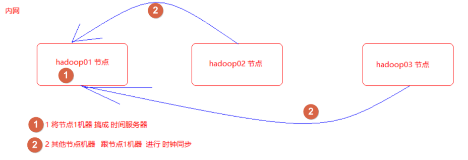 以 hadoop01 这台服务器的时间为准进行时钟同步