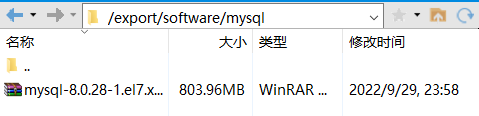 第五步: 将 mysql 安装包上传到 /export/software/mysql 下解压