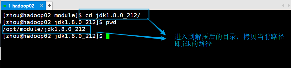 ① 在hadoop02上将hadoop02上的/opt/module/jdk1.8.0_212目录拷贝到hadoop03中 (推送)