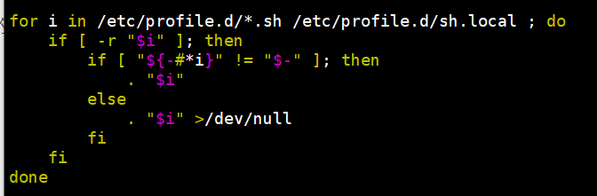 原因:在/etc/profile文件 会循环遍历/ect/profile.d/下的后缀为.sh的文件并执行相关操作
