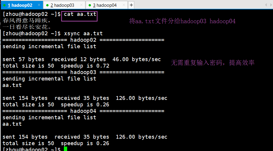 【4】有了免密登录之后我们在使用xsync同步分发效率就会提高