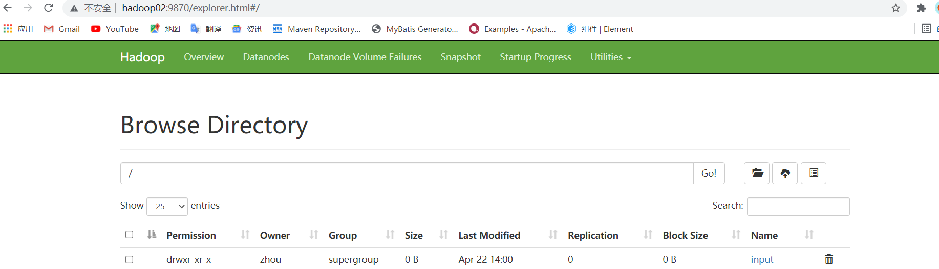 以上操作都是在hadoop目录下执行相关命令