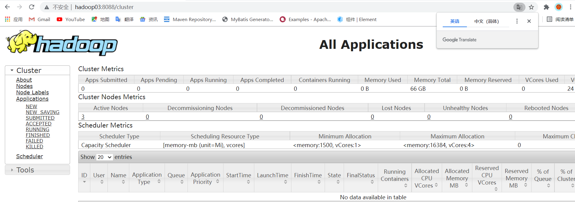 (6)web端查看YARN 浏览器输入:http://hadoop03:8088