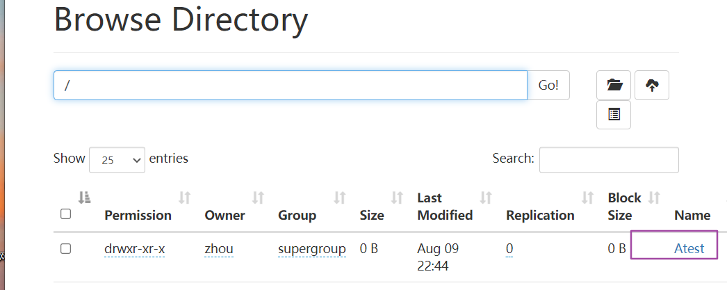 hadoop fs -mkdir /Atest