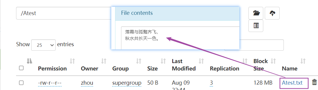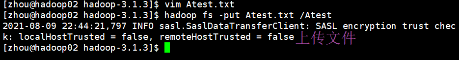 hadoop fs -put Atest.txt /Atest
