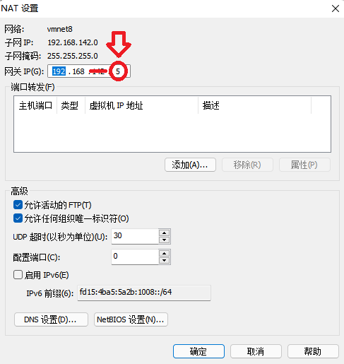 第四步,找到【网关 IP】,修改指向的最后一位数即可(最后一位数不做要求,1~256都可以,不与修改前的数字相同即可)
