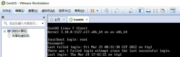 打开安装好centos的Linux虚拟机