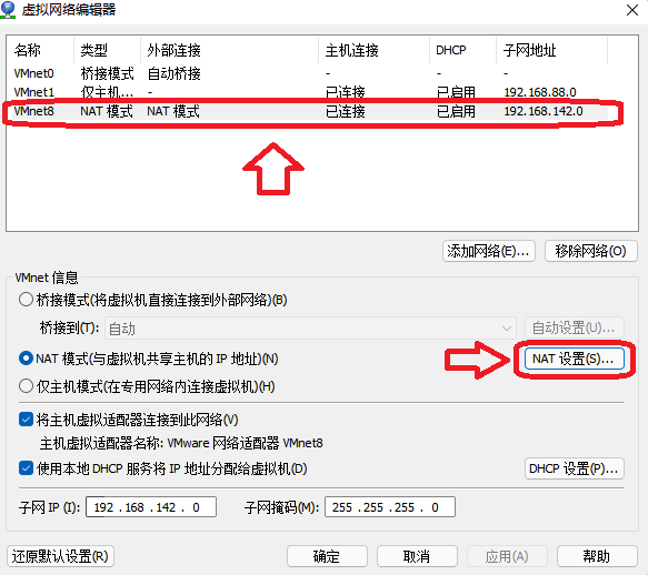 第三步,选择【VMnet8 NAT模式】,再点击【NAT 设置】