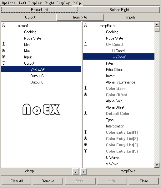 07用中键将Clamp拖到先前建立的Ramp贴图,建立如图的节点关系