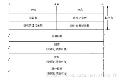随后的4个bit字段说明最后4个变长字段中包含的条目数,对于查询报文,问题数通常是1,其他三项为0,类似的,对于应答报文,回答数至少是1,剩余两项可以使0或非0