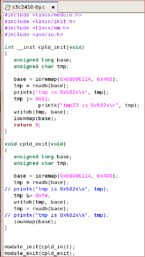 复制驱动程序s3c2410-tty.ko到tftpboot目录,将驱动程序s3c2410-tty.ko下载到目标机上,在目标机上加载驱动程序