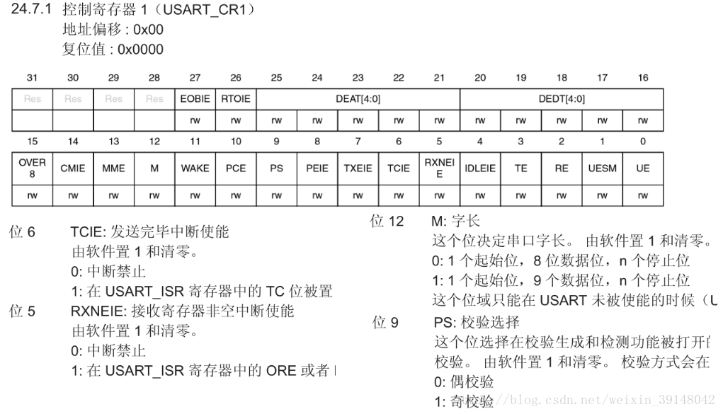 while(!(USART1->ISR &(1<<7))); //等待发送寄存器空
