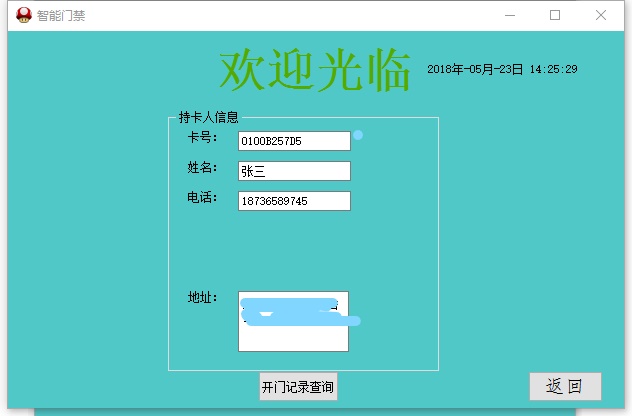 下面是使用125k的卡刷卡结果,该卡在数据库中存有数据,直接读出信息,如若没有可以选择添加。。