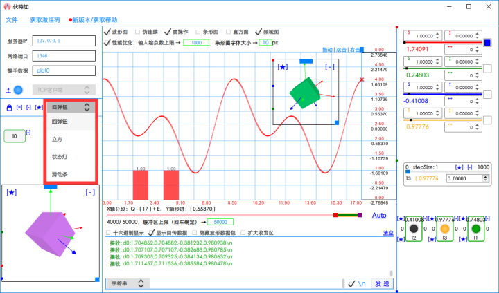 3. 支持添加自定义图形控件,方便用户以图形化的方式, 调整程序参数,查看数据状态。