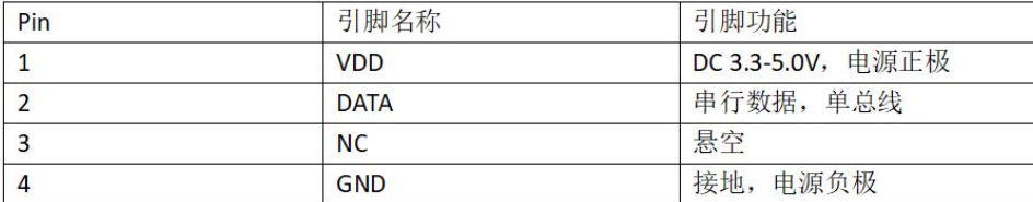 DHT11为 4 针单排引脚封装,如下图,采用单线制串行接口,只需加适当的上拉电阻,信号传输距离可达20米以上,使其成为各类应用甚至最为苛刻的应用场合的最佳选则。