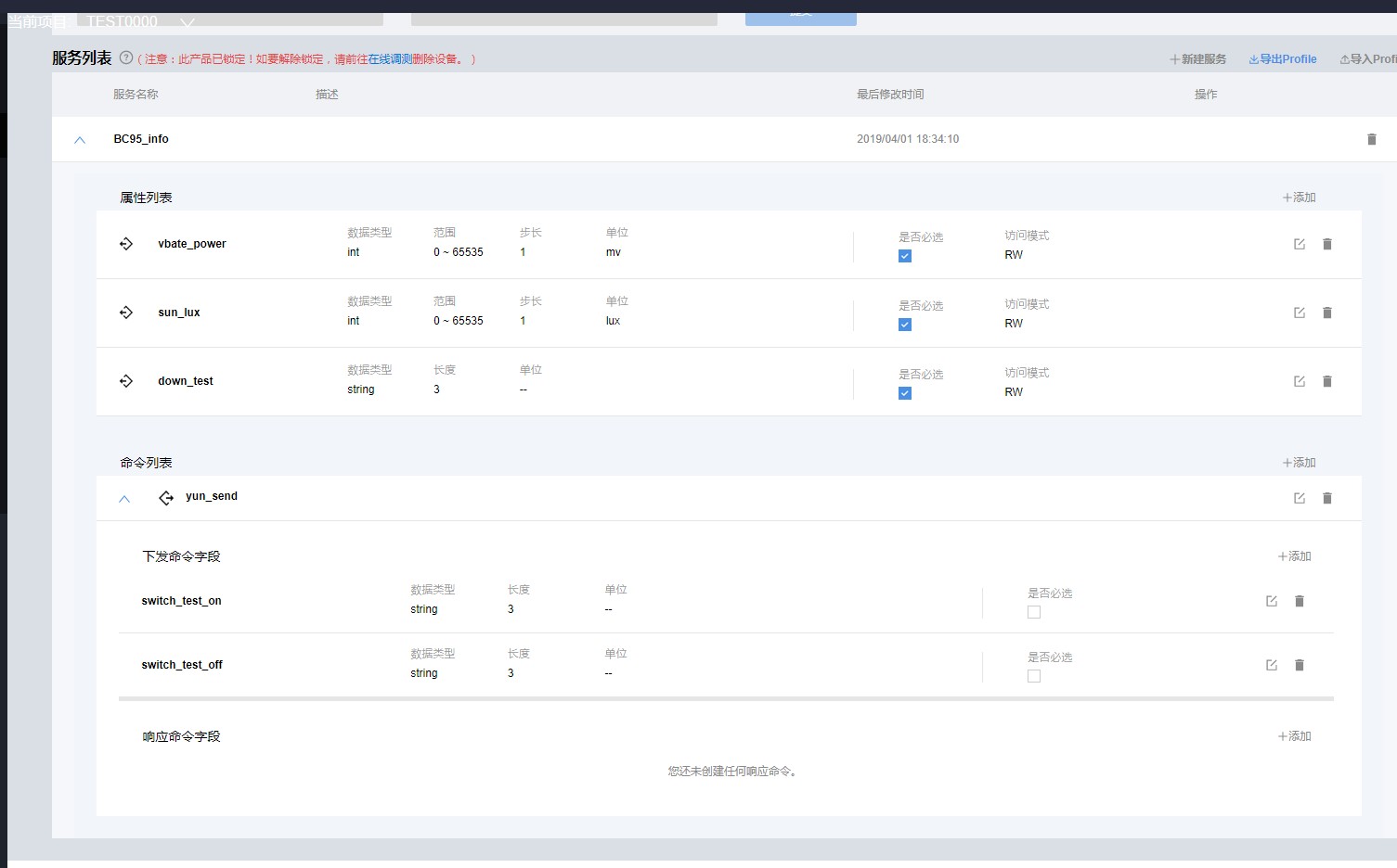 3.进入创建好的产品中增加profile(profile文件定义的字段就是最好平台应用那到的字段)