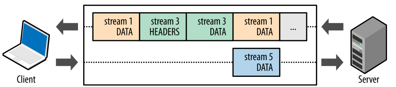客户端和服务器可以将 HTTP消息分解为互不依赖的帧,然后交错发送,最后再在另一端把它们重新组装起来