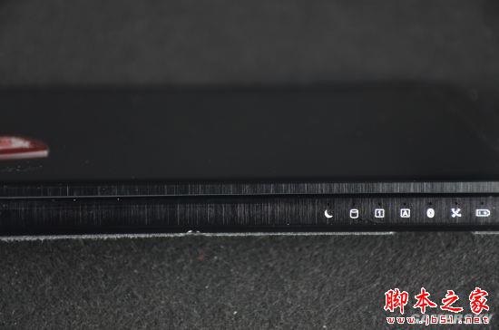 首先是指示灯,通常游戏本的指示灯会在C面键盘的右上部位,而我们在上页提到了,键盘的上边只有一排散热口。工作状态的指示灯则背已到了游戏本前面的右下角。