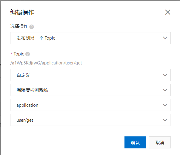 点击添加操作,将数据转发给应用层topic,注意是物理层的update到应用层的get,如图5.6所示。