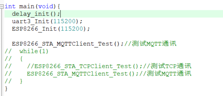 ESP8266_STA_MQTTClient_Test();//测试MQTT通讯