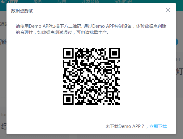 ii.使用Demo APP扫描二维码,开始数据点测试;