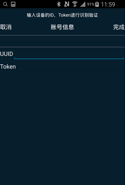 1.启动Demo App, 点击添加设备,输入设备ID和token.