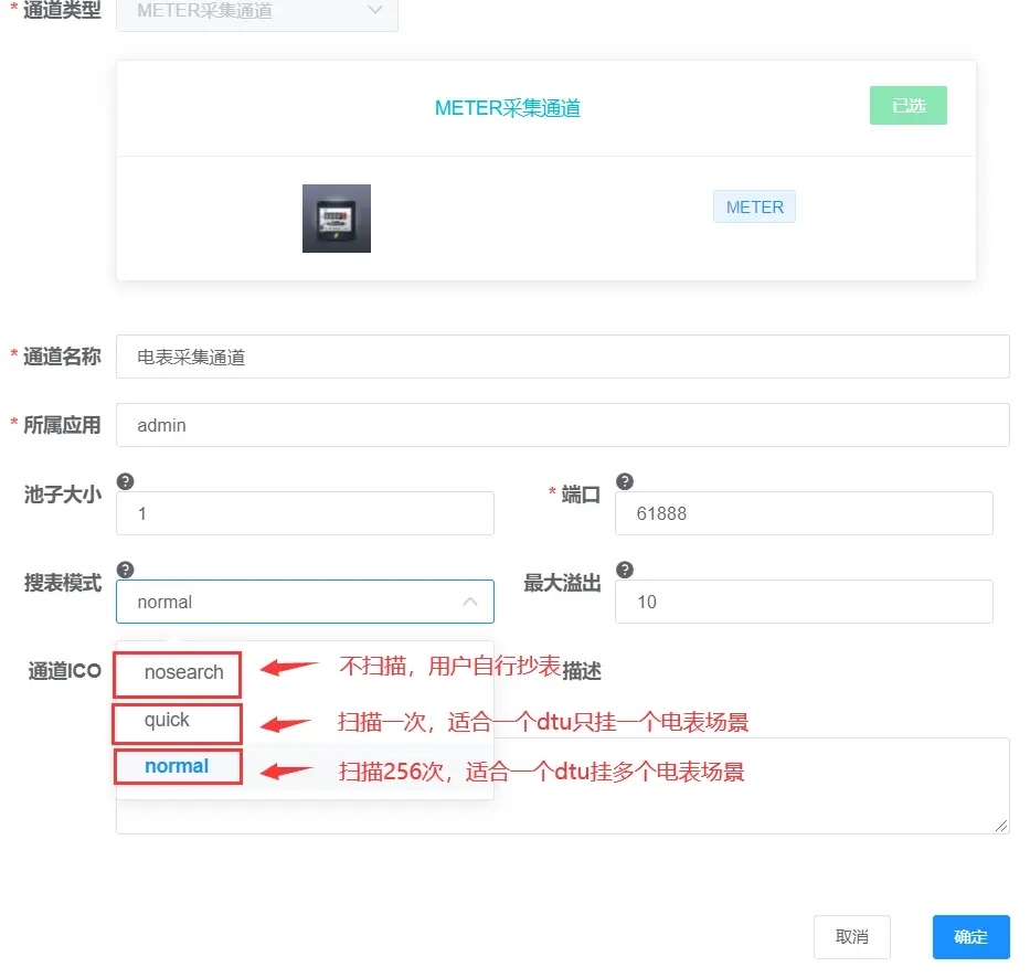 | quick | 只扫描一次,适合一个dtu挂一个电表场景 |