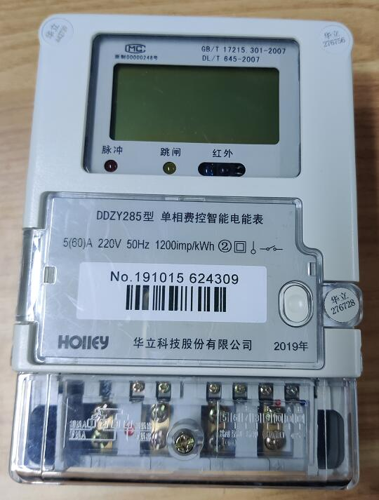 - 电表:采用的是华立的DDZY285型单相费控智能电能表