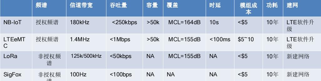 以上就是高贵冬天最近收集整理的关于一张表了解四大物联网通信技术差异:NB-IoT 、LTEeMTC、LoRa与SigFox的全部内容,更多相关一张表了解四大物联网通信技术差异:NB-IoT内容请搜索靠谱客的其他文章。