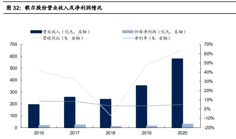 歌尔股份精密零组件业务持续发展,折射物联网浪潮下的MEMS器件机遇:歌尔精密零组件业务主要提供 MEMS 传感器、微型麦克风、微型扬 声器/受话器等产品,2020年实现收入122.05亿元,同比增长14.93%。据Yole数据,2019年全球MEMS产业企业收入排名中歌尔股份位列第9 位,是唯一一家进入全球前十的中国企业,拟分拆歌尔微电子上市(子公司,从事MEMS麦克风、MEMS传感器、微系统模组等相关产品),将 进一步加强公司MEMS布局。