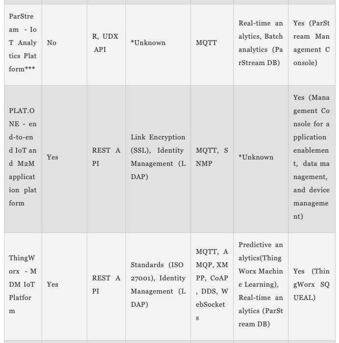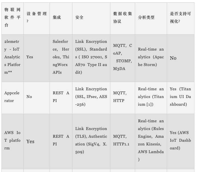 * Unknown标记的说明在资料中找不到相关信息**AWS 物联网已经获得了2lemetry***Cisco已经获得了ParStream