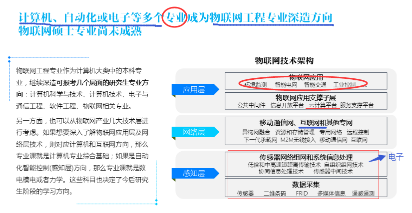 体会:物联网专业涉及的面比较广,本科学的内容不精,有点大而泛,需要电子、计算机(网络、软件)等方面的知识。
