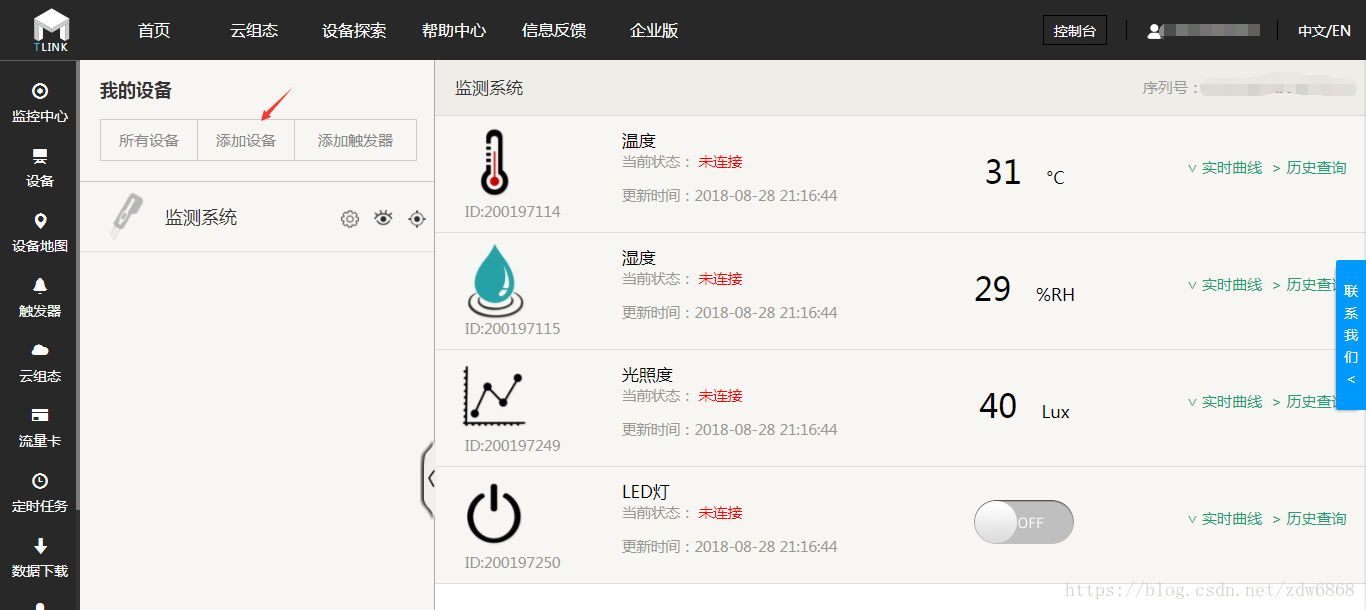 TLink 提供了触发器操作(位于控制台触发器便签下),触发器是指当设备的某个传感