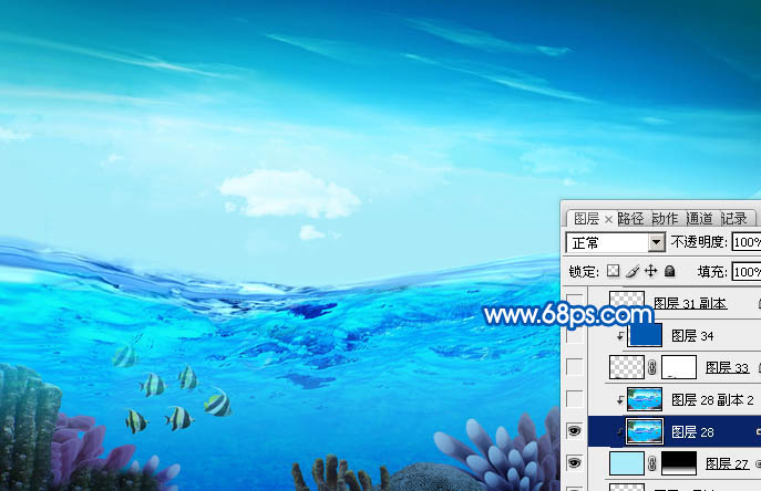 11、打开海底素材,拖进来,适当调整好位置,按Ctrl + Alt + G 创建剪贴蒙版,效果如下图。