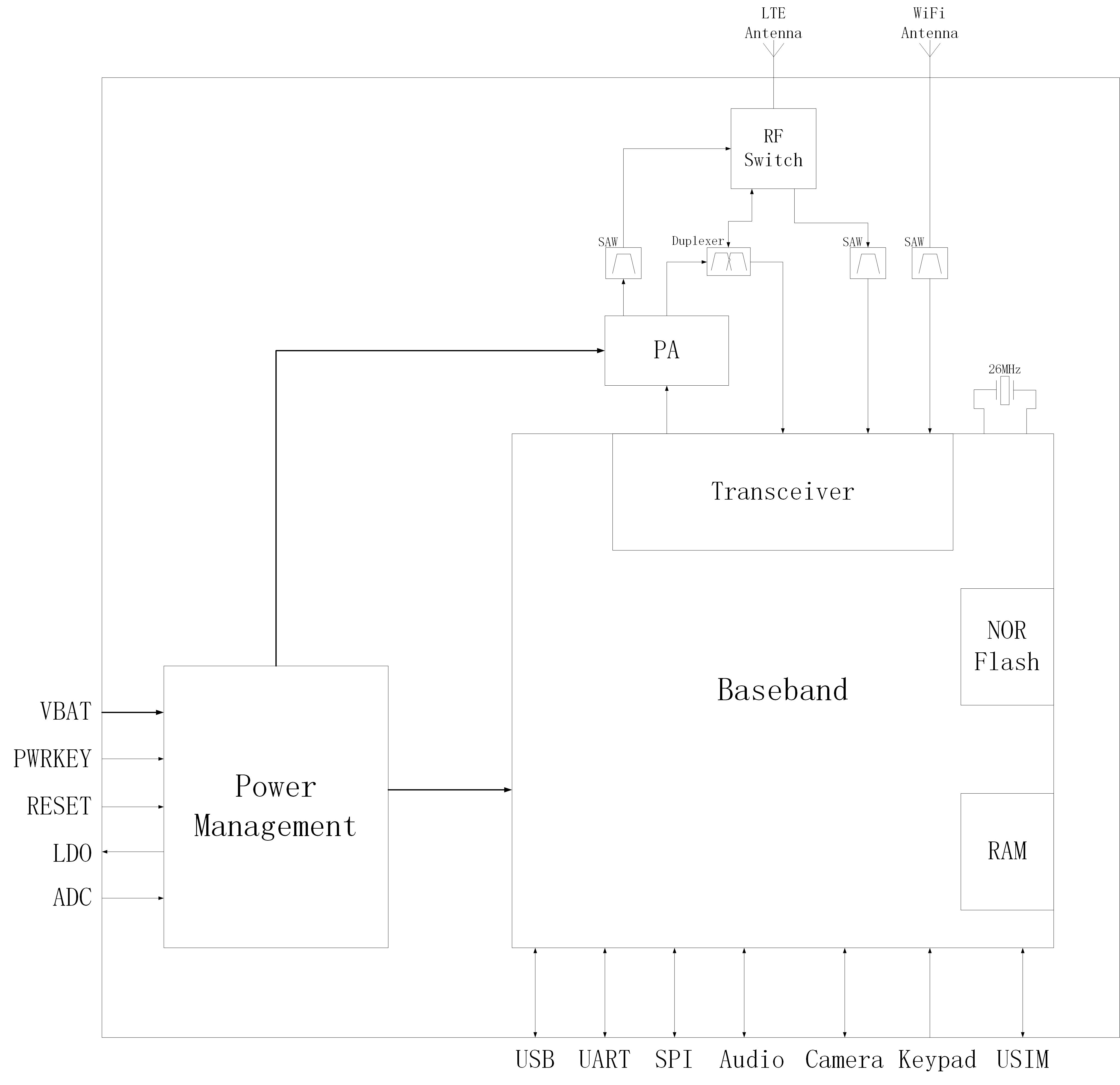 下图为Air722UG模块功能框图,阐述了其主要功能: