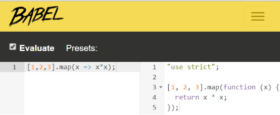 本文介绍Babel6.x的安装过程~首先呢,可以使用Babel在线转换 https://babeljs.io/repl/