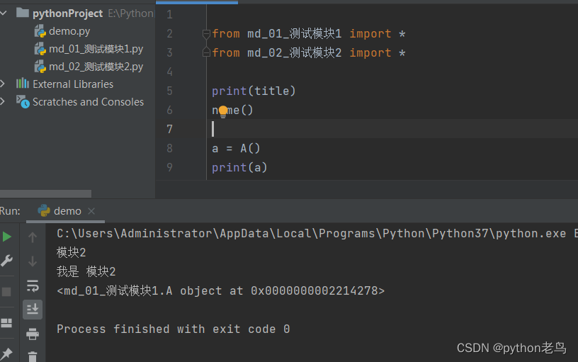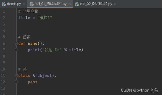 首先先准备两个模块,md_01_测试模块1和 md_02_测试模块2,然后在demo文件中导入模块并使用工具。