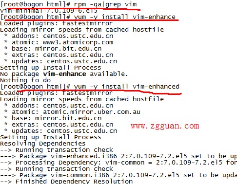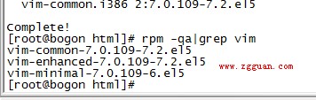 2. 如果缺少了其中某个,比如说: vim-enhanced这个包少了,执行:yum -y install vim-enhanced 命令,它会自动下载安装。