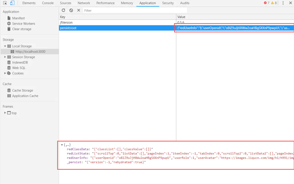 3、最后我们调试查看浏览器中的localStorage缓存数据