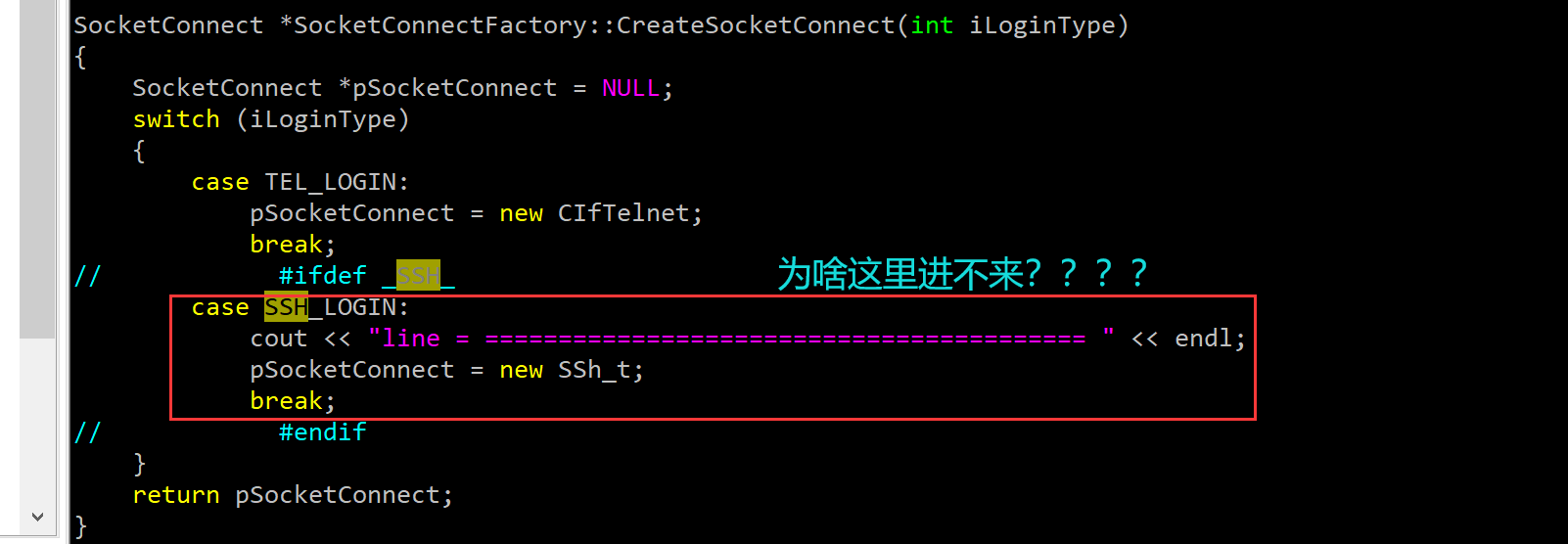 把破烂代碼裏的#ifdef _SSH_ #endif刪掉以後就能進去了,這個是爲什麽呢?好謎啊臥槽