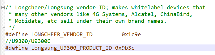 搜索0x1c9e,找到LONGCHEER_VENDOR_ID,这是默认就有的VID,VID指的是某个厂商的编号