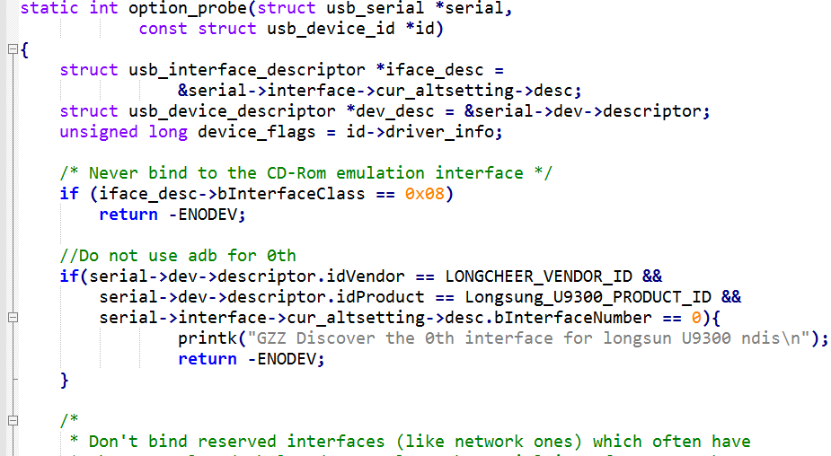 printk("GZZ Discover the 0th interface for longsun U9300 ndisn");