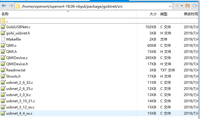 2.进入src目录,将驱动源码中的GobiNet文件夹中的内容放入其中