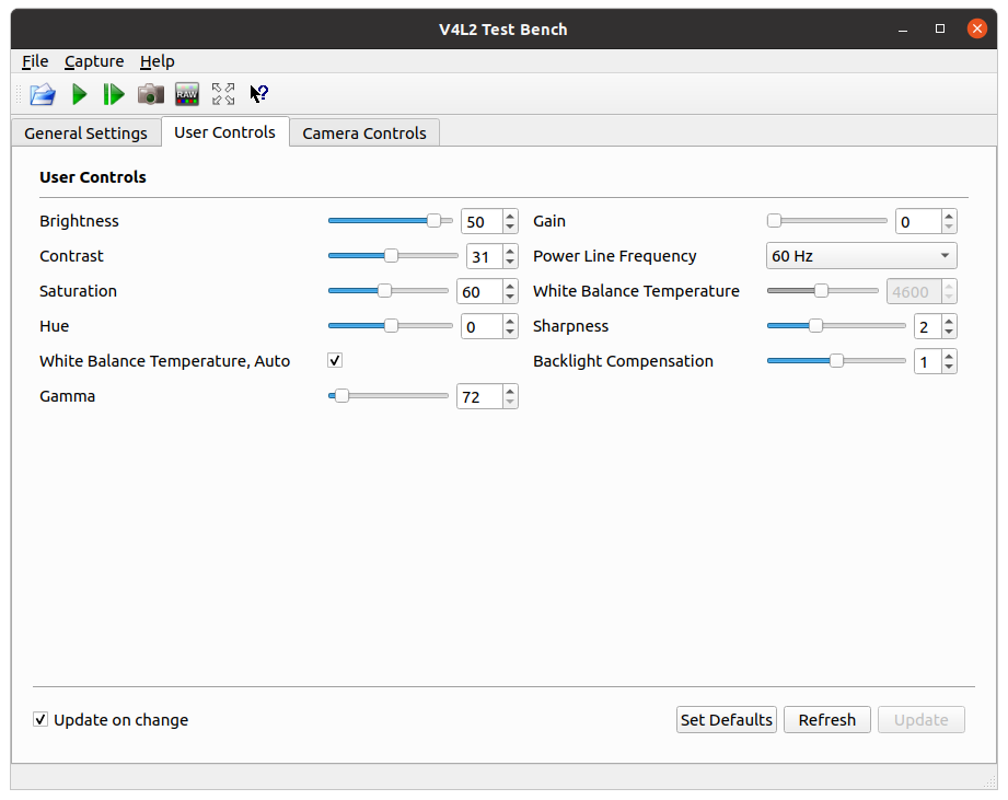 这是软件qv4l2的截图,v4l2是linux自带的相机驱动程序,可以看到有许多可供我们调整的设置